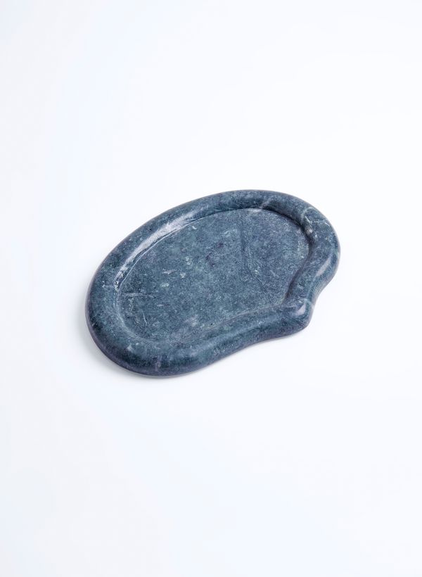 Produzida artesanalmente em mármore natural verde, a Bandeja possui acabamento polido.