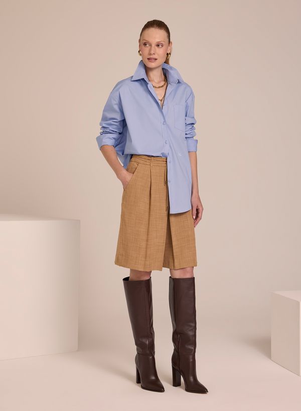 Invista em alfaiataria para dias mais quentes, como a Bermuda Brenda para obter looks com potencial de elegância e autenticidade em momentos descontraídos. Use com acessórios, camisa oversized e botas de cano longo, para uma produção protagonista.