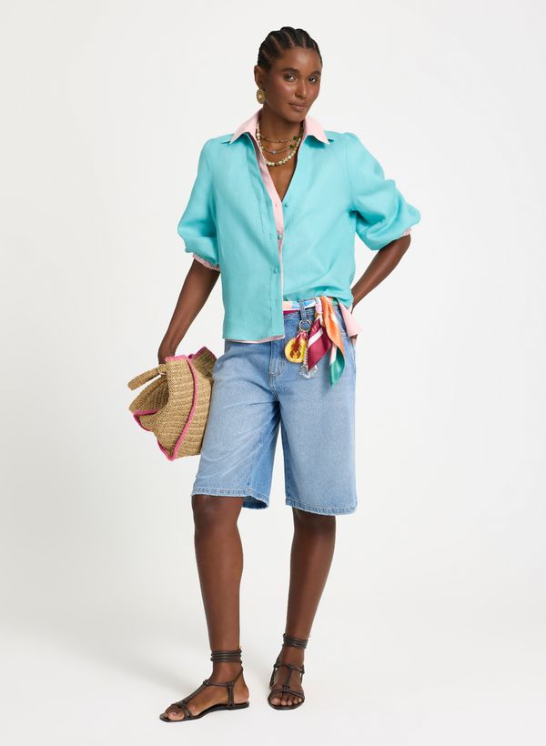 Fresh e descomplicada, a Bermuda Magali Jeans é perfeita para composições easychic nos dias de calor, combinando estilo descontraído e atitude moderna. Use com camisas leves, rasteiras e acessórios coloridos para um mood vibrante e estiloso em produções de passeio ou viagens.