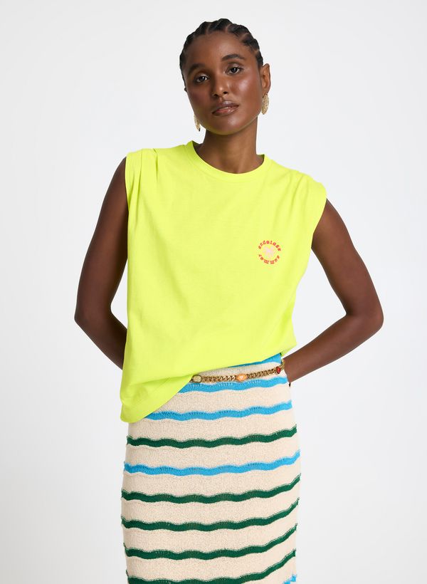 Em um mood fresh e vibrante, a Blusa Jolie Sun ilumina o visual com seu tom marcante, perfeita para produções descomplicadas e estilosa ao lado de saias estampadas, rasteiras e acessórios coloridos, criando um look harmônico e cheio de personalidade para os dias ensolarados.