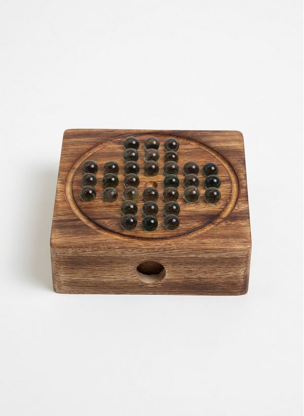 A Caixa Resta Um e Dado Wood é produzida em madeira, formato quadrado e possui gaveta retrátil para guardar as bolinhas de gude transparentes utilizadas no Resta Um. Também contém quatro mini dados feitos em madeira com detalhes em latão em banho dourado. Pode ocorrer pequenas variações de tamanhos e cores.