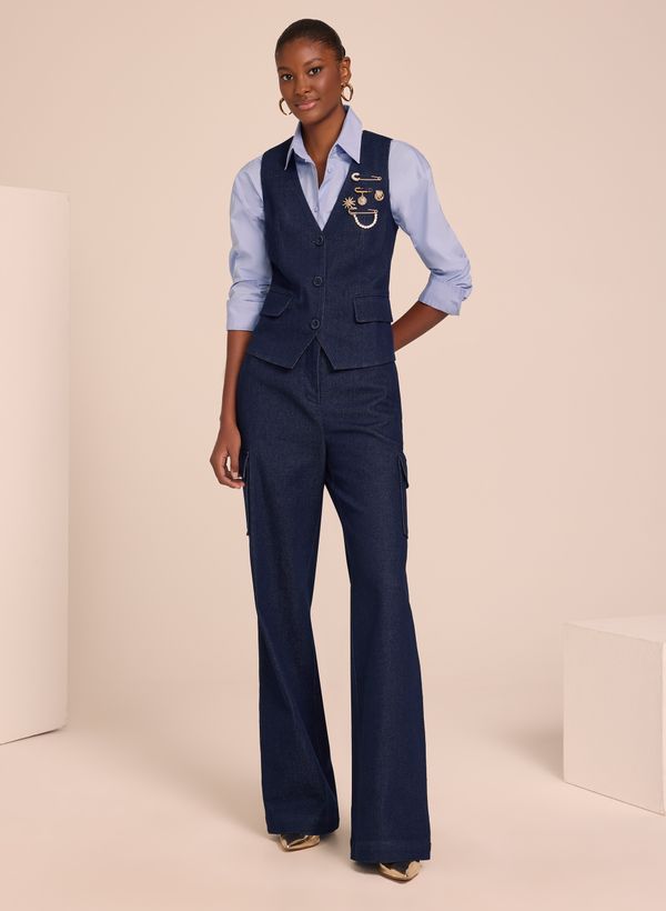 Contemporânea com um caimento elegante, a Calça Tracy é perfeita para aquele look comfy estiloso. Invista nessa peça com o colete da mesma coleção, camisa e scarpin, para um toque easychic.