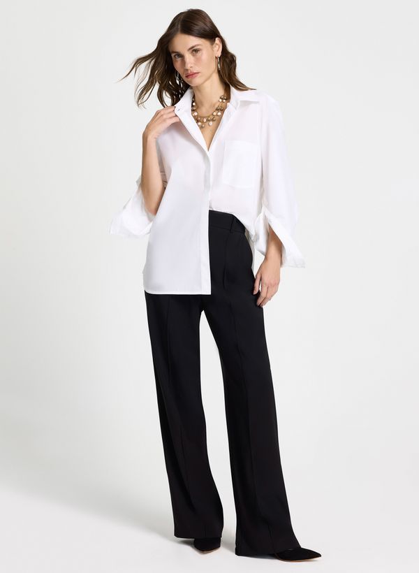 O caimento da Calça Beatriz, além de charmoso, irá deixar o seu look versátil. Aposte nessa peça com camisa off white, mix de acessórios e scarpin, para um toque feminino e imponente na composição.