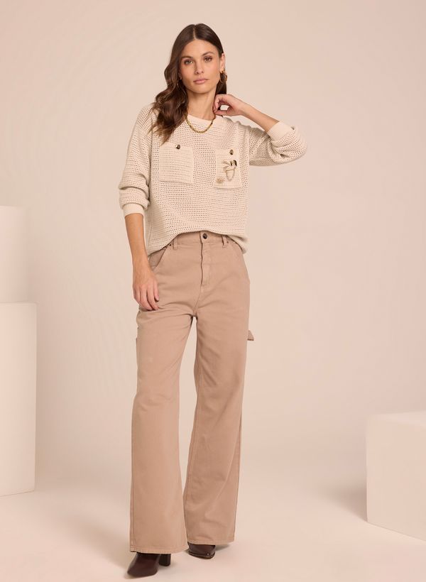 Chic, em uma cor perfeita para montar looks atemporais e harmônicos, a Calça Jenevieve é uma ótima escolha para produzir composições de peças de tons claros. Aposta na combinação com acessórios, tricot off white e botas, para um visual equilibrado e versátil.