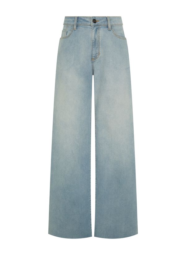 Confeccionada em jeans com algodão, a Calça possui modelagem reta, cintura média com cós estruturado e passantes aplicados, bolsos frontais e posteriores funcionais, pernas amplas com caimento alinhado e levemente aberto na barra, fechamento frontal por zíper e botão.