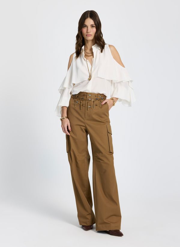 Com toque utilitário e modelagem contemporânea, a Calça Patricia traz sofisticação e um mood urbano. Aposte na composição blusa de babados, scarpins e mix de acessórios para uma pegada fashionista.
