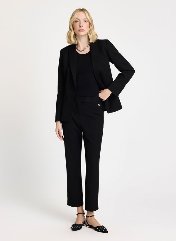Alfaiataria é uma ótima escolha, por se encaixar muito bem tanto em eventos formais quanto aos mais descontraídos. Use a Calça Stella em um look all black com top, sandálias flats, acessórios metalizados e o blazer da mesma coleção para arrematar.