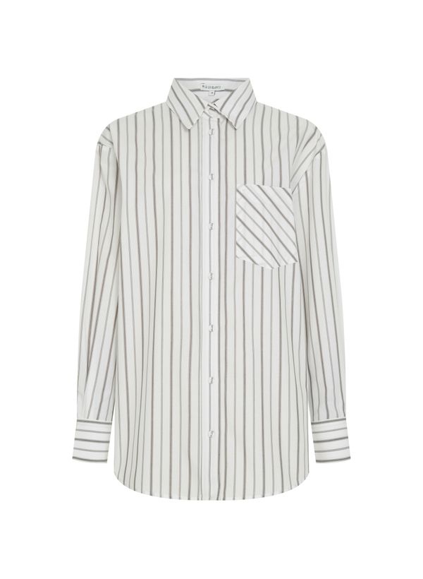 Confeccionada em algodão, a Camisa possui modelagem reta com caimento estruturado, gola clássica, estampa listrada, mangas longas com punhos largos e abotoamento, bolso aplicado, fechamento frontal por botões e acabamento pespontado.
