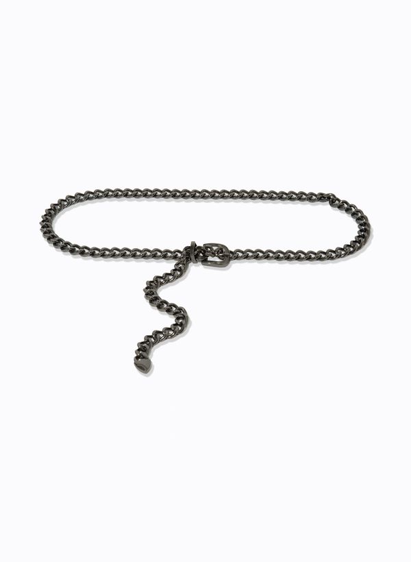 Produzido em metal, o Cinto possui corrente grossa dourada em elos entrelaçados, fivela metálica no mesmo tom, detalhe de corrente longa com ponteira e acabamento polido brilhante.