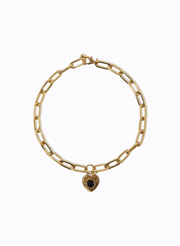 Produzido em metal, o Colar possui corrente de elos retangulares de tamanho médio, acabamento polido e visual marcante, pingente central em formato de coração com relevo ornamental e aplicação de pedra redonda central, estrutura firme e proporcional ao comprimento do acessório, fechamento por fecho tipo mosquetão com elo ajustável e acabamento metálico uniforme.