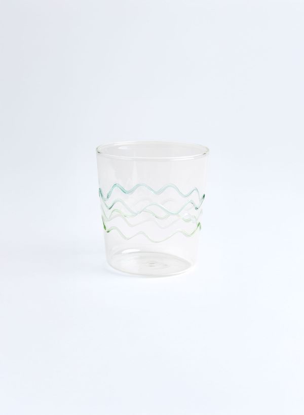 O Copo Baixo Waves é produzido artesanalmente em vidro cilíndrico translúcido incolor. Possui detalhes de aplicação na superfície externa em formato de ondas em tons de azul, verde e branco. Por conter acabamentos manuais deve haver pequenas variações de formas, cores e tamanhos entre as peças, tornando assim, cada peça única.