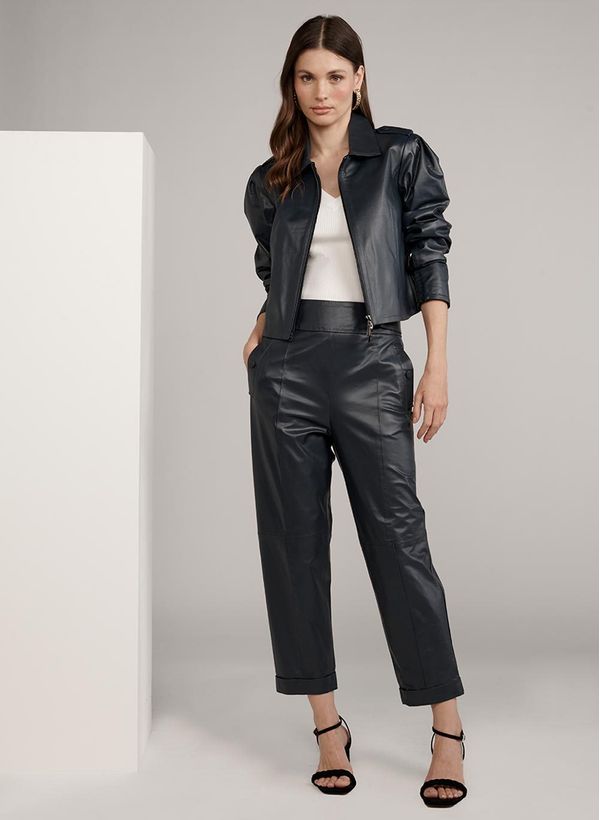 Jaqueta Le Lis Suki Marinho Couro Feminina