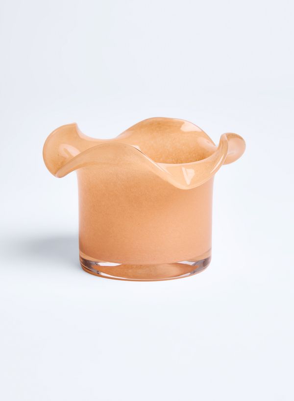 O Porta Objeto Flower é produzido artesanalmente em vidro de superfície lisa, formato cilíndrico e borda em formato sinuoso, fazendo alusão a pétalas. Por conter acabamentos manuais deve haver pequenas variações de formas, cores e tamanhos entre as peças.