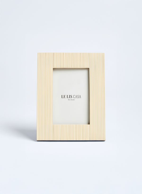 O Porta Retrato Amanda é produzido em base e alça de MDF com superfície frontal coberto por tiras de resina off-white. Possui formato retangular, visor em vidro transparente e tamanho P. Peça possui acabamentos artesanais, portanto pode ocorrer pequenas variações de cores, tamanhos e padronagens.