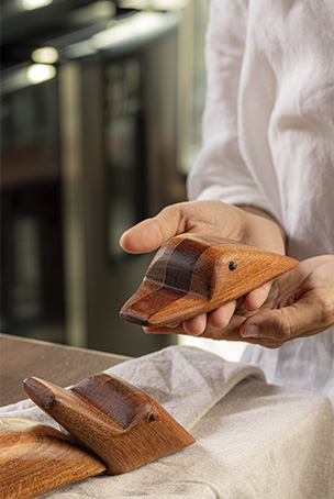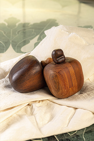 O resultado são duas linhas autorais: uma inspirada no açaí e outra na castanha-do-pará, além de objetos decorativos que homenageiam os símbolos - caju e o boto - e a estética da região amazônica. A série é produzida pela Vedac, empresa que trabalha com vestígios de madeiras nobres provenientes de manejo florestal sustentável e com total rastreabilidade.