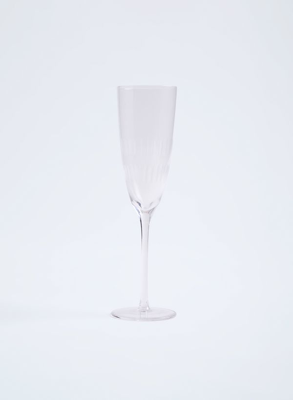 A Taça Champagne Goa eleva o ato de brindar a um novo patamar de sofisticação. Lapidada artesanalmente em vidro transparente de alta qualidade, sua superfície exibe uma textura fosca marcada por delicados desenhos verticais que refletem a luz com suavidade e sutileza. O corpo alongado valoriza a efervescência dos espumantes, enquanto a haste esguia e a base firme proporcionam equilíbrio e conforto ao servir.