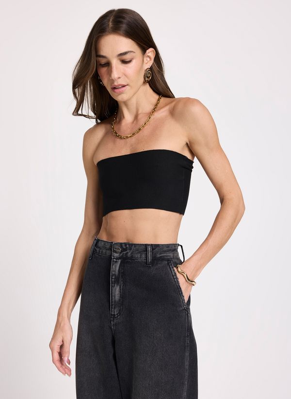 Confeccionado em tricot, o Top possui modelagem cropped, sem alças e acabamento interno.